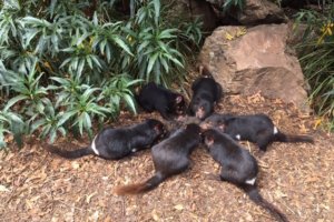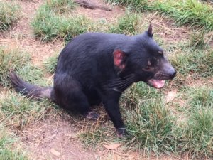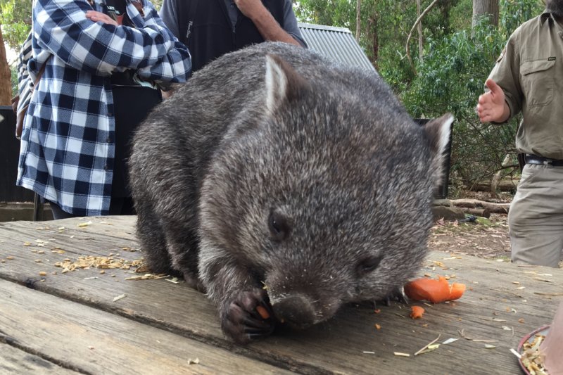 On the road again starten wir die Fahrt (45 Minuten) von Hadspen zum Trowunna Wildlife Park in Mole Creek. Vor der Führung mit Andrew um 11.00 Uhr sind noch wenige Besucher da. So schauen wir uns die heimischen Echidnas, Quolls, Kookaburras, Wombats und natürlich die Tasmanian Devils in aller Ruhe an. Das Echidna wollte sich von mir partout nur von hinten fotografieren lassen. Was das wohl bedeuten sollte?